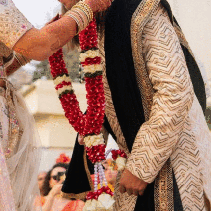Our Blue Orchid Varmala woven with the rarest of Celestial hues, where each delicate bloom whispers of twilight skies and hidden Forest pools.