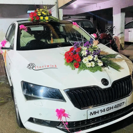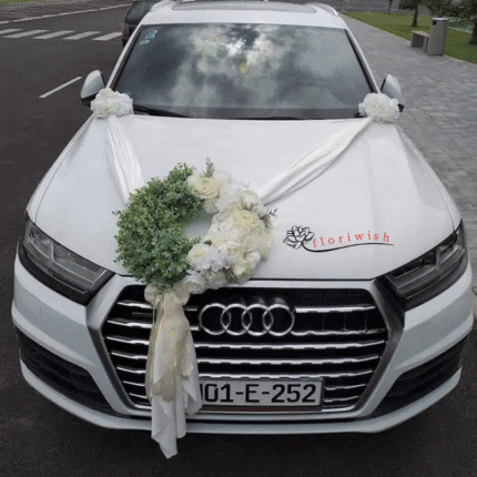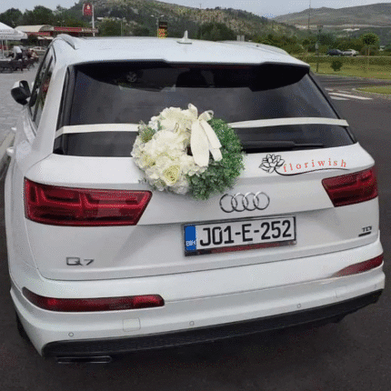 - Heart Shape made with White Flowers in front of the Car Bonnet