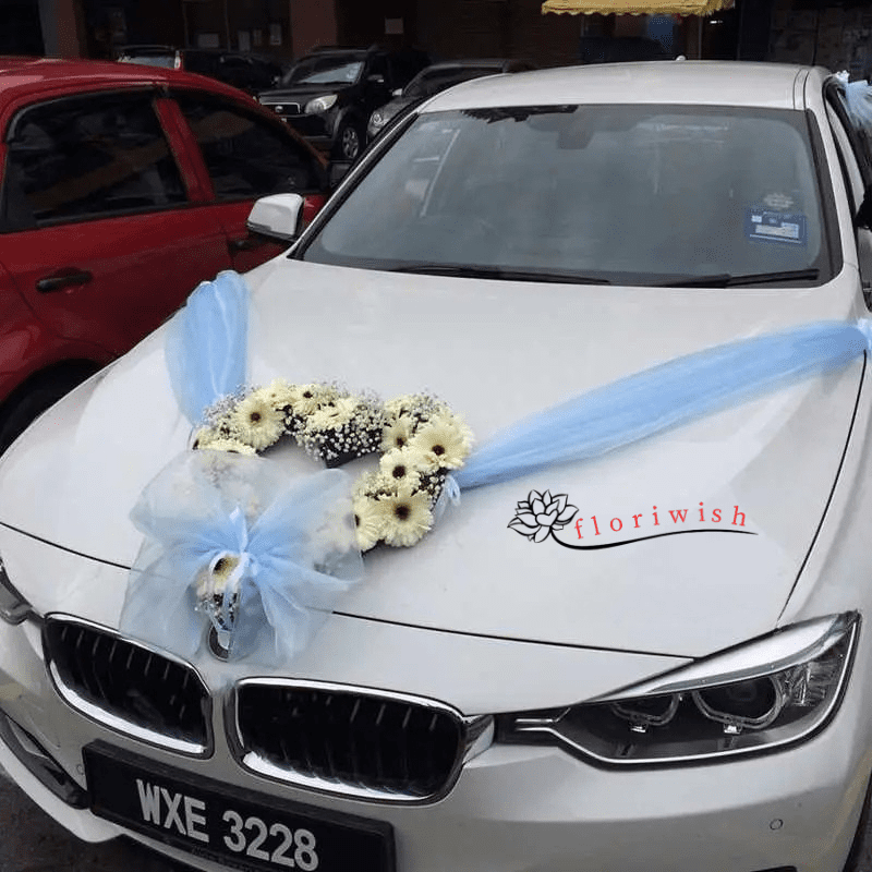 - Bonnet and Back of the Car decorated with Blue Cloth