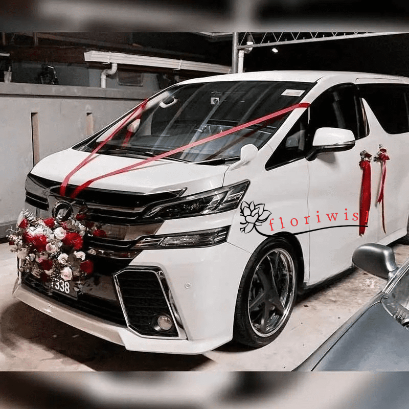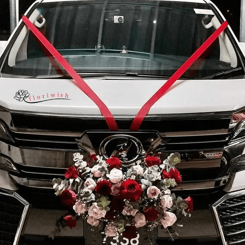 - Bonnet of the Car Decorated with Red Ribbons