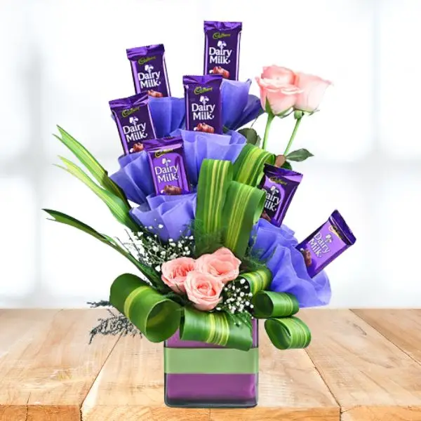 Vase beautifully decorated with Leaves, Gypsy, and Fillers