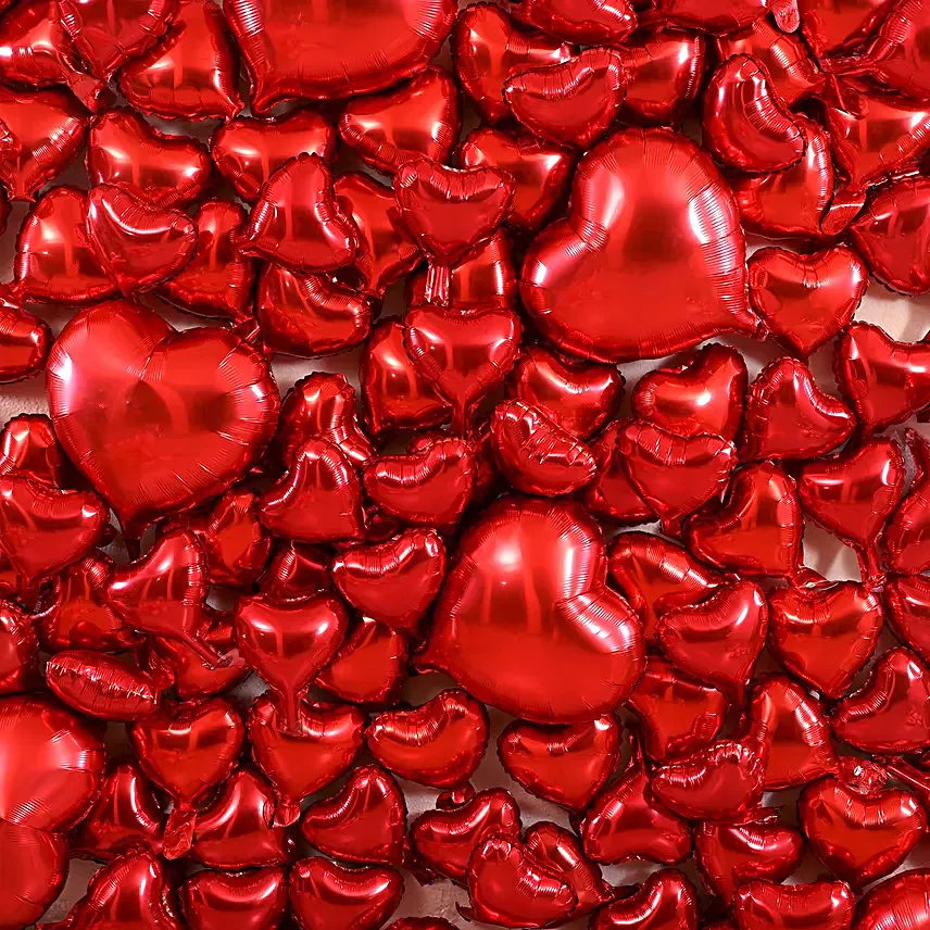 - Balloon backdrop made with 130 heart foil balloons (10 Inches)and 10 large size heart foil balloons (18 Inches)