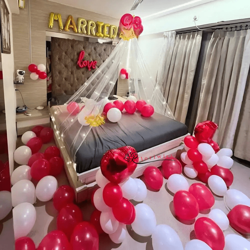 50 Balloons on Bed and Floor