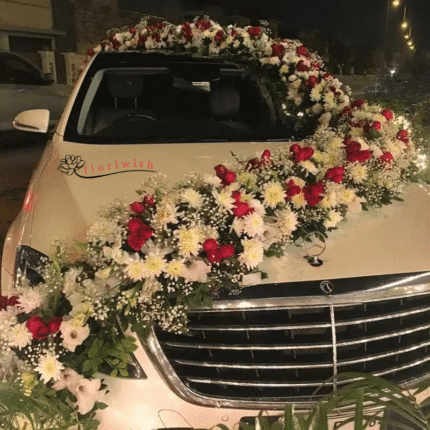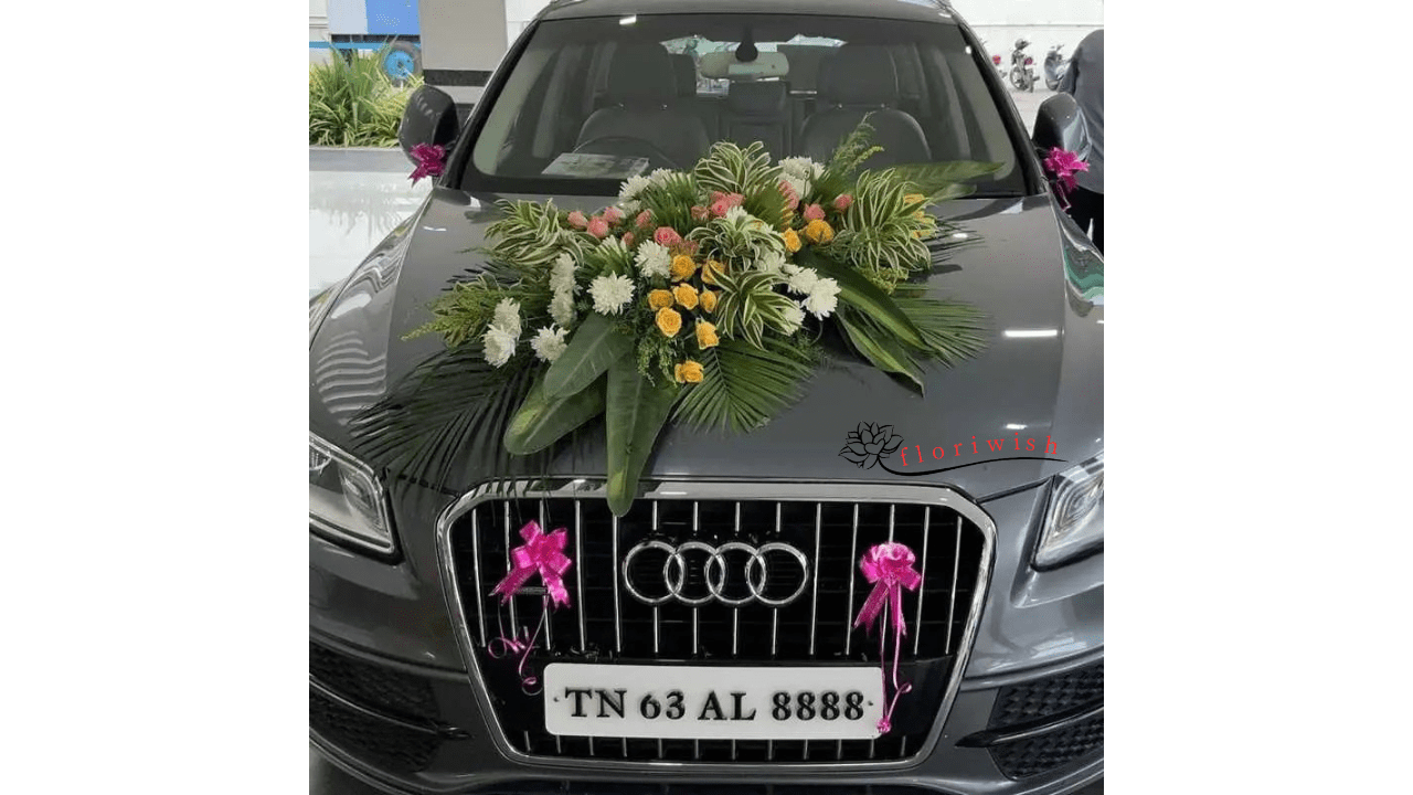 - 1 Mix Flower Bouquet in front of the Car Bonnet including Leaves