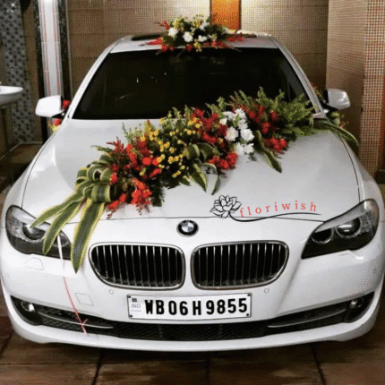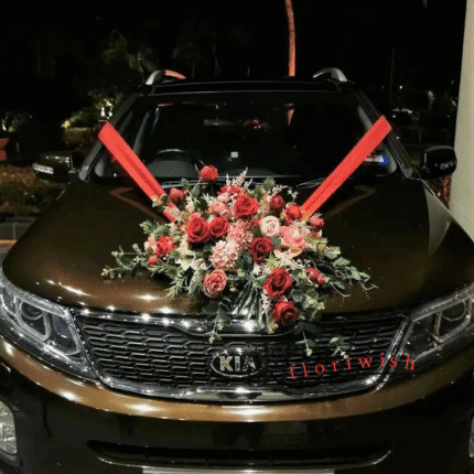 - Heart Shape made with Mixed Flowers in front of the Car Bonnet